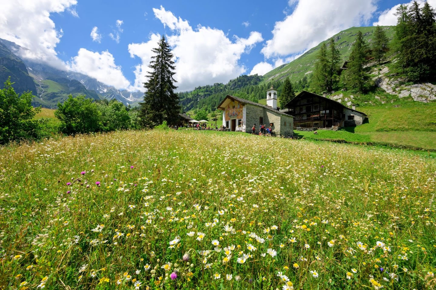 Ein etwa zehnminütiger Autotransfer bringt Sie nach Riva Valdobbia (Abfahrt 9 Uhr). Nach einem Spaziergang durch das Dorf folgen Sie dem Tal bis nach Alagna und steigen von dort ins Val d’Otro auf – eines der schönsten und eindrucksvollsten Zeugnisse der Walserkultur. Die alten Berghütten und eine Mittagseinkehr in der Hütte Zer Senni gehören zu den Höhepunkten. Anschließend führt der Weg weiter nach Pedemonte, wo Sie zwischen den historischen Walserhäusern flanieren und den stimmungsvollen Dorfbrunnen bewundern können. Zum Abschluss wandern Sie zurück nach Alagna, wo Ihre Unterkunft auf Sie wartet. Das Abendessen können Sie entweder direkt in Ihrer Unterkunft oder in einem der gemütlichen Restaurants im Ort genießen.
