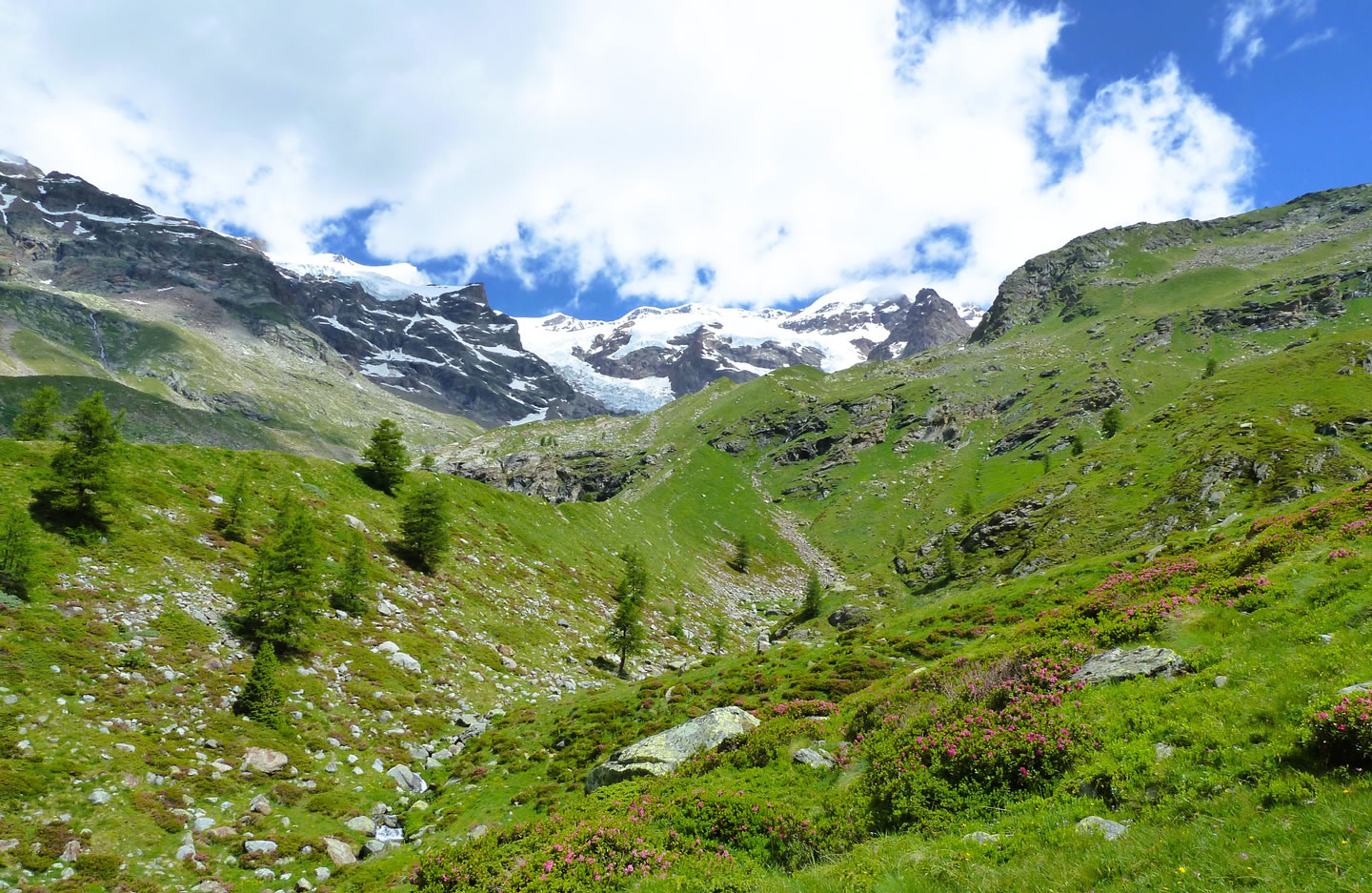 Am letzten Wandertag stehen Ihnen – je nach Wetter und persönlicher Vorliebe – mehrere Varianten offen. Sie können vom Gabiet-See absteigen und eine gemütliche Runde entlang des Ufers unternehmen, bevor Sie über das Netscho-Tal nach Gressoney-la-Trinite hinabwandern. Alternativ steigen Sie höher in Richtung der Monte Rosa Gletscher auf und folgen anschließend dem Weg durch das Salza-Tal hinunter nach Staffal. Von dort gelangen Sie zu Fuß oder mit dem Linienbus weiter nach Gressoney-la-Trinité.