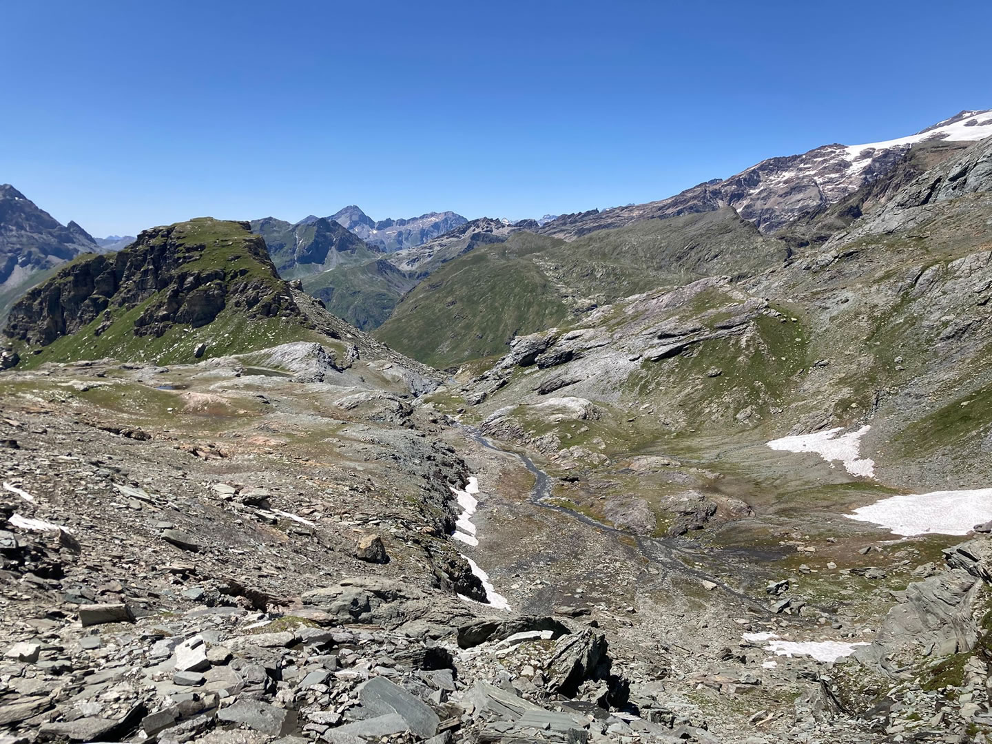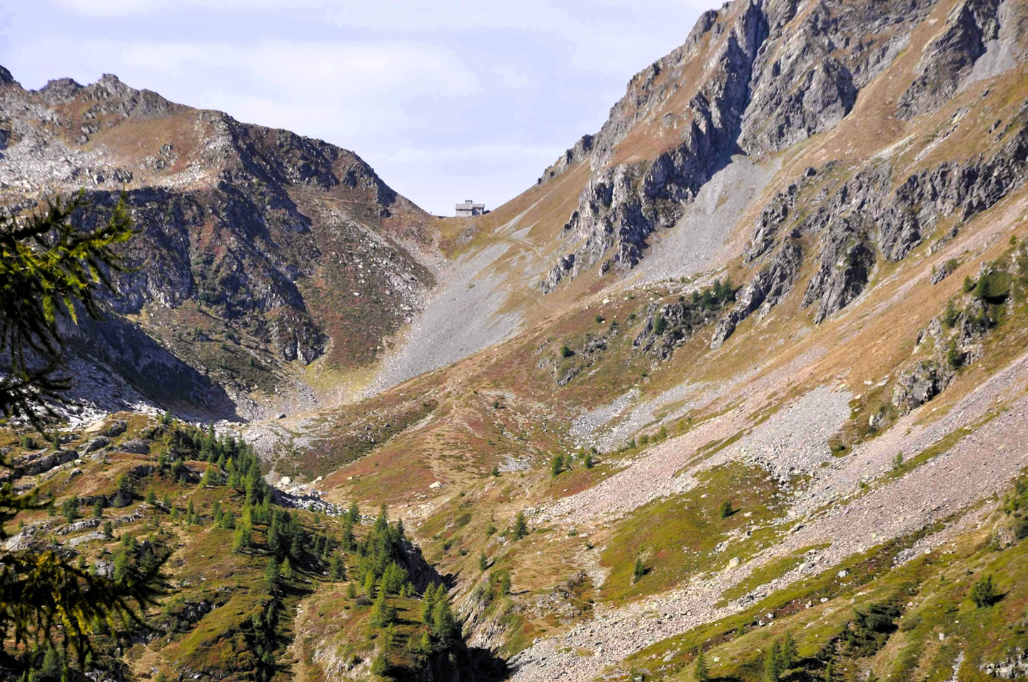 Wer eine weniger anspruchsvolle Route bevorzugt, kann von der Seilbahnstation Pianalunga zum Col d’Olen (2.870 m) aufsteigen, anschließend auf einer kleinen Straße zu den Indren-Stauseen (2.900 m) laufen und von dort zur Orestes-Hütte absteigen.