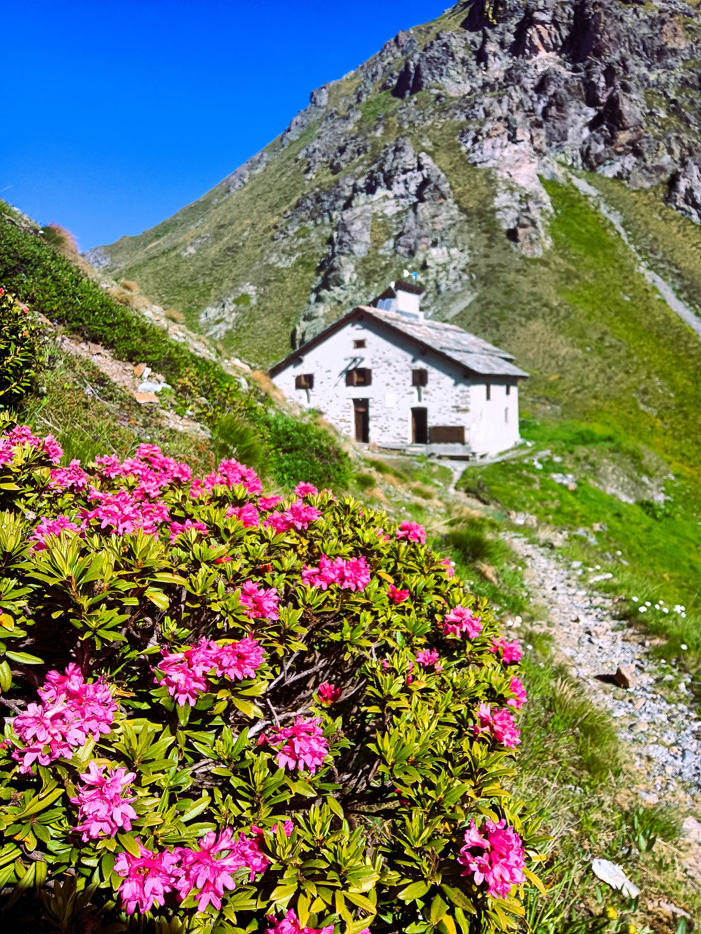 Die erste Etappe führt Sie in östlicher Richtung aus Gressoney-Saint-Jean hinaus zum Pass Col Valdobbia (2.480 m). Der Weg folgt einer alten, geschichtsträchtigen Route, die das Lys-Tal mit dem Sesia-Tal verbindet. Am höchsten Punkt thront, eingebettet in eine eindrucksvolle Alpenkulisse, die Berghütte Ospizio Sottile. Der Aufstieg ist lang, aber gleichmäßig und gut markiert. Nach dem ersten Talabschnitt wird die Steigung sanfter, und der Pfad zieht sich terrassenartig durch ein weites, von klaren Gebirgsbächen durchzogenes Hochtal. Immer wieder taucht in der Ferne das Ospizio Sottile auf, verschwindet hinter Geländekanten und zeigt sich erneut, wenn das Ziel bereits nahe ist. Das historische Haus, 1823 eröffnet und im Jahr 2000 vollständig renoviert, steht für eine jahrhundertealte Tradition alpiner Gastfreundschaft.