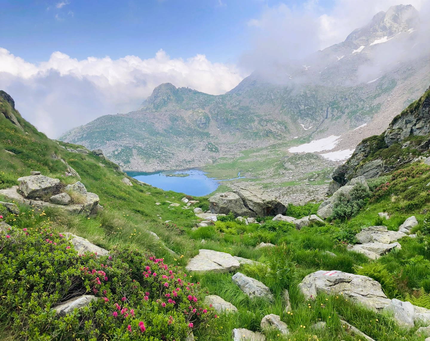 Heute führt Sie Ihre Etappe ins grüne Hochtal Valsesia. Der Pfad windet sich durch schattige Wälder und weite Bergweiden, begleitet vom Rauschen der Bergbäche. Hinter der Alpe Larecchio öffnet sich das idyllische Seitental Vogna, in dem zwischen Wiesen und Felsen verstreut alte Almhütten stehen – stille Zeugen vergangener Zeiten. Bald erreichen Sie das malerische Dorf Peccia, dessen Walserhäuser mit dunklen Holzfassaden und steinernen Dächern dem Ort seinen besonderen Charme verleihen. Gleich daneben schimmert ein smaragdgrüner Stausee im Sonnenlicht – ein idealer Ort für eine kurze Pause. Über sanfte Wiesen führt der Weg schließlich weiter bis in die Ortschaft Sant’Antonio.