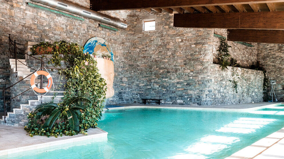 Ein weiteres Highlight ist der Indoor-Pool mit Panoramablick. Im warmen Wasser zu liegen, während die Sonne langsam hinter den Bergen verschwindet, hat etwas Magisches. Im Sommer werden die großen Fenster geöffnet, so dass man sich auf der Terrasse sonnen kann. Im Frühling und Herbst kann zusätzlich ein Jacuzzi genutzt werden.