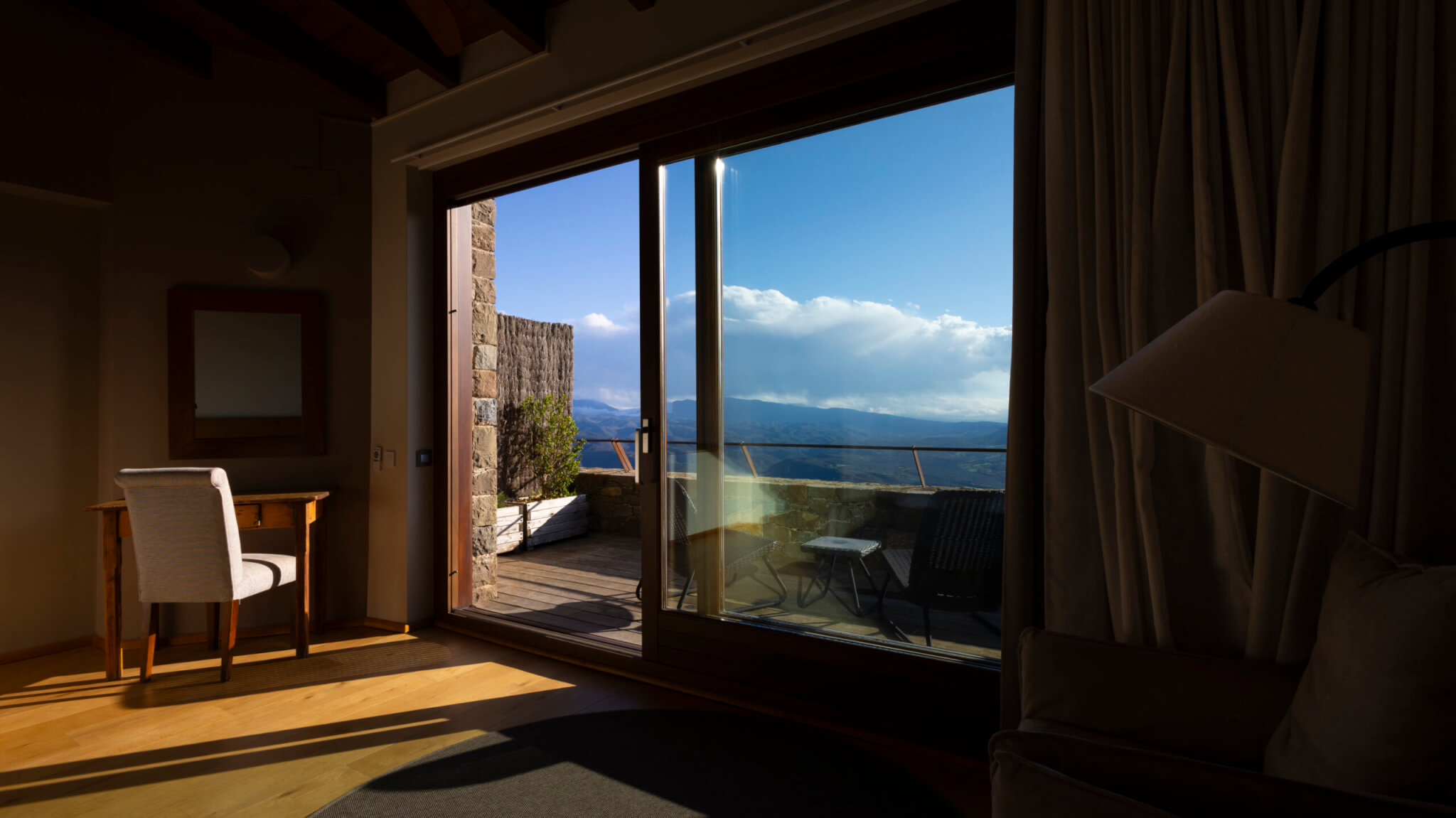 Das Öko-Hotel über den Wolken von Katalonien verbindet rustikale Architektur mit modernem Design. Ich mag diese Kombination sehr. Alte Steinmauern, Holzbalken und große Glasfronten schaffen eine Atmosphäre, die gleichzeitig gemütlich und stilvoll ist.