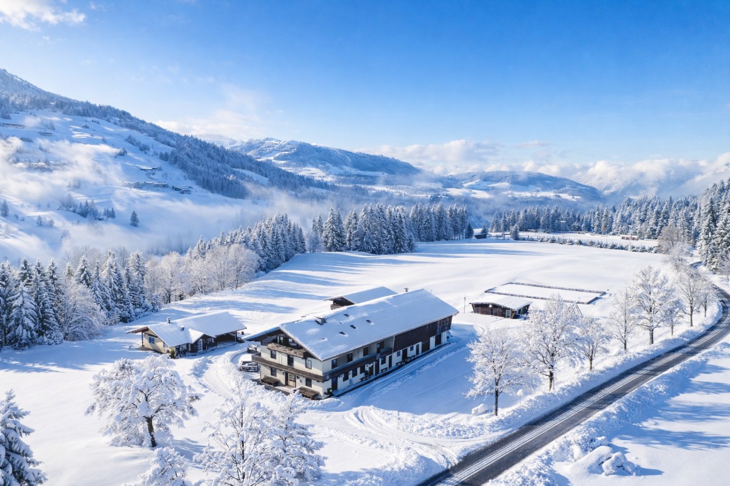 Sie verbringen Ihren Familien-Winterurlaub in Tirol auf unserem Ferienhof etwas außerhalb von Westendorf, umgeben von Wiesen und Wäldern. Die Gastgeber- Familie kocht für die Urlaubsgäste. Morgens gibt es ein reichhaltiges Frühstück und abends ein leckeres Wahlmenü (vegetarisch oder Fisch/Fleisch). Familien mit 2 Erwachsenen plus Kind(ern) bekommen ein eigenes Mehrbettzimmer mit Dusche oder Etagendusche. Klein-Familien mit einem Erwachsenen teilen sich das Zimmer mit einer weiteren Klein-Familie. Das Haus verfügt außerdem über drei Aufenthaltsräume und eine Indoor- Sportanlage mit Boulderwand, Käfig-Fußball, Tischkicker und Dart. Wlan-Nutzung ist kostenfrei. Der Gratis-Skibus hält gleich beim Haus und fährt in wenigen Minuten zu Gondel und Skischule (je einmal morgens und abends). Erleben Sie mit Ihren Kindern einen unvergesslichen Winterurlaub in Tirol: Ob mit Skiern, Snowboard, Schlitten oder Wanderschuhen, ob zusammen mit anderen oder alleine, entscheidet jede Familie im Skiurlaub in Tirol für sich.