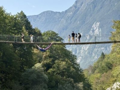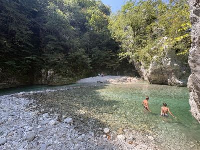 Michael V.28.08.2025Diesen Sommer habe ich mit meinen beiden Töchtern (8 und 11 Jahre alt) eine ganz besondere Zeit im Soča-Tal in Slowenien verbracht. Wir waren im Familiencamp untergebracht, auf einem sehr schönen Campingplatz direkt an der Soča. Unser Zelt stand nur ein paar Minuten vom Fluss entfernt – die perfekte Mischung aus Naturerlebnis und Komfort.