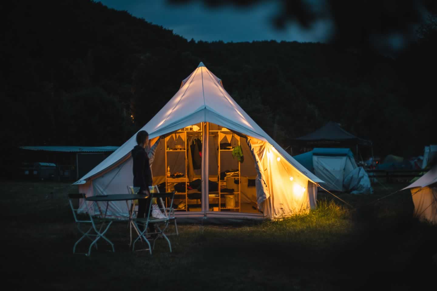 - Wohnen im Glamping-Zelt oder im eigenen Zelt