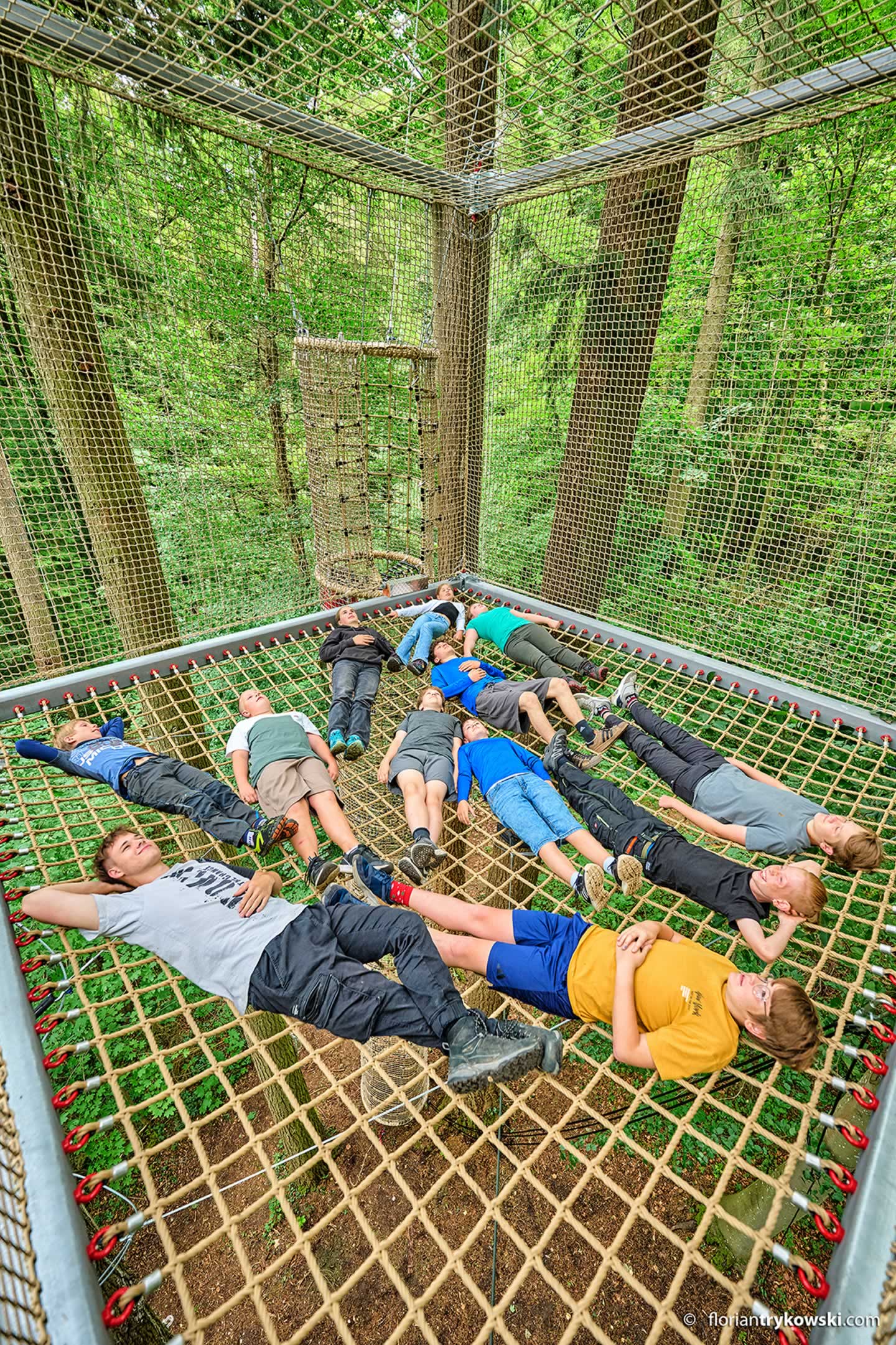 Das Kobelnest ist eine überregional einzigartige Baumhängematte in 10 Meter Höhe. Der Name „Kobelnest“ leitet sich von einer Eichhörnchenbehausung ab. Über einen Netztunnel aus Herkulestau wird das Element sicher und ohne weitere Ausrüstung erklettert. -