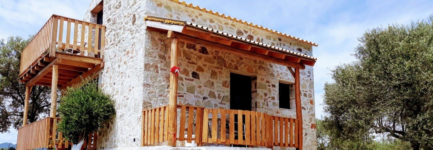 Das Ferienhaus Kostas (65 qm, 3–5 Personen) hat einen Wohnraum mit Sitzecke, Kamin, Kochzeile mit Kühlschrank sowie Badezimmer mit DU/WC. Der offene Schlafbereich unter dem Dach mit 1 Doppelbett, 2 Einzelbetten und ggf. 1 Zustellbett ist über eine Wendeltreppe erreichbar (nicht kleinkindgerecht). WLAN und Nutzung von Klimaanlage/Heizung kostenfrei. Der Fußweg zur Villa KaliMeera führt ca. 180 m durch den großen Garten. Zum Meer sind es ca. 150 m.