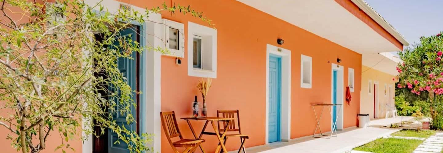 Das freistehende Haus Spyros verfügt über 6 Studios für 1–3 Personen. Die Villa KaliMeera ist ca. 130 m Fußweg und der Strand ca. 280 m entfernt.