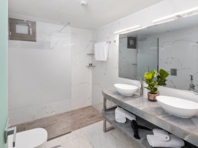 Die Suite (gesamt 2 Suiten) verfügt über 2 Schlafräume, so dass in dieser Wohneinheit bis zu 2 Erwachsene und 3 Kinder ihren Platz finden. Zusätzlich zu den zwei Schlafzimmern (1x mit Doppelbett und 1x mit zwei Einzelbetten) gibt es noch einen Wohn-Essbereich mit gut ausgestatteter Kitchenette sowie ein modern eingerichtetes Bad mit DU/WC. Die Suiten haben ebenfalls entweder einen Balkon oder eine private Terrasse mit Blick in die grüne Landschaft rund um die Villa Fundana.