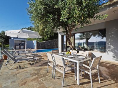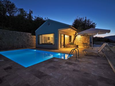 Die 2023 fertig gestellte Ferienvilla (ca. 98 qm Wohnfläche) beeindruckt durch den atemberaubenden Blick über Korfu bis hinüber zu den Bergen des Festlands und Südalbaniens. Weit entfernt von Lärm und Geschäftigkeit finden Sie hier Ruhe, Privatsphäre und Entspannung. Die Villa liegt unterhalb der Hauptanlage und damit abseits der Studios, Appartements und Suiten. Ein eigener Garten (ca. 240 qm) mit Bougainvilleen, Mandelbäumchen und einem jahrhunderte alten Olivenhain schaffen einen friedvollen Rückzugsort.