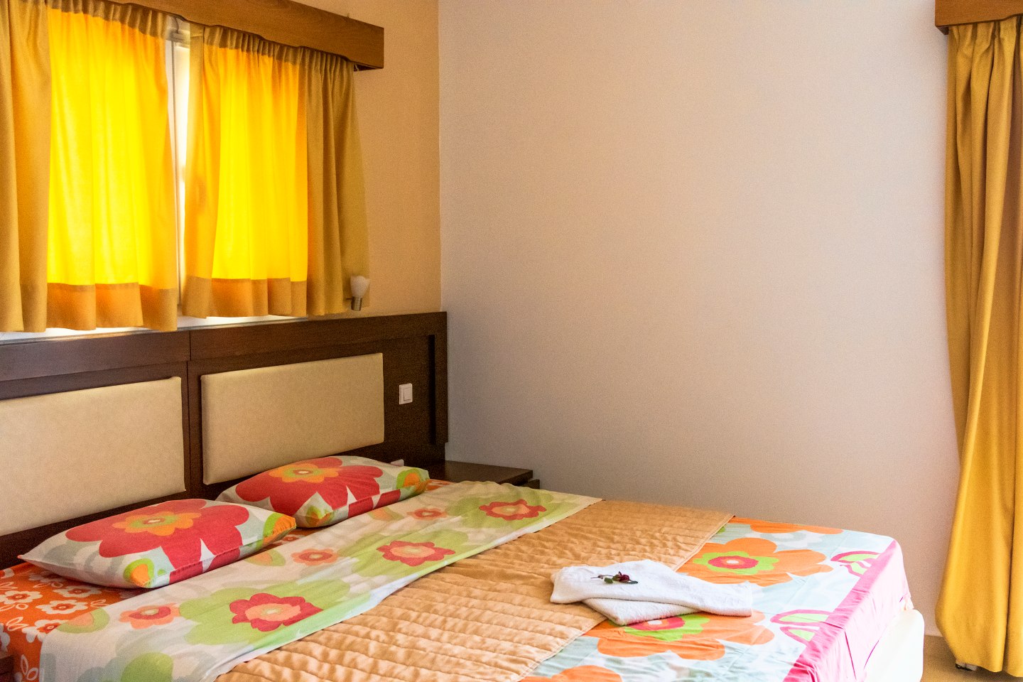 - Kat. A: einfache Zimmer im Appartementgebäude (kein Meerblick), geteilte Bad/WC/Küchenzeile mit Kühlschrank, Balkon, bis zu 10 Gehminuten zum Restaurant/Seminargebäude.