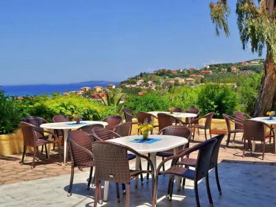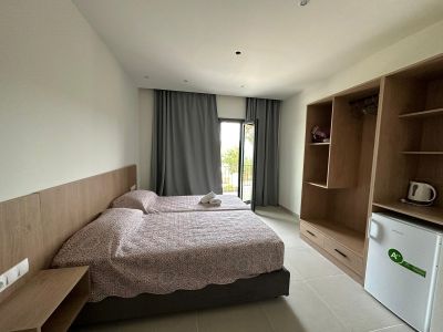 - Kat. B: neu renovierte, moderne Zimmer im EG des Haupthauses mit eigener DU/WC, Terrasse mit Meerblick oder Standard Zimmer in Appartements ohne oder mit eingeschränktem Meerblick (überwiegend mit gemeinsamer DU/WC), mit Kühlschrank (teils mit kleiner Küche), Balkon bzw. Terrasse. Entfernung zum Restaurant/Seminargebäude: wenige Gehminuten.