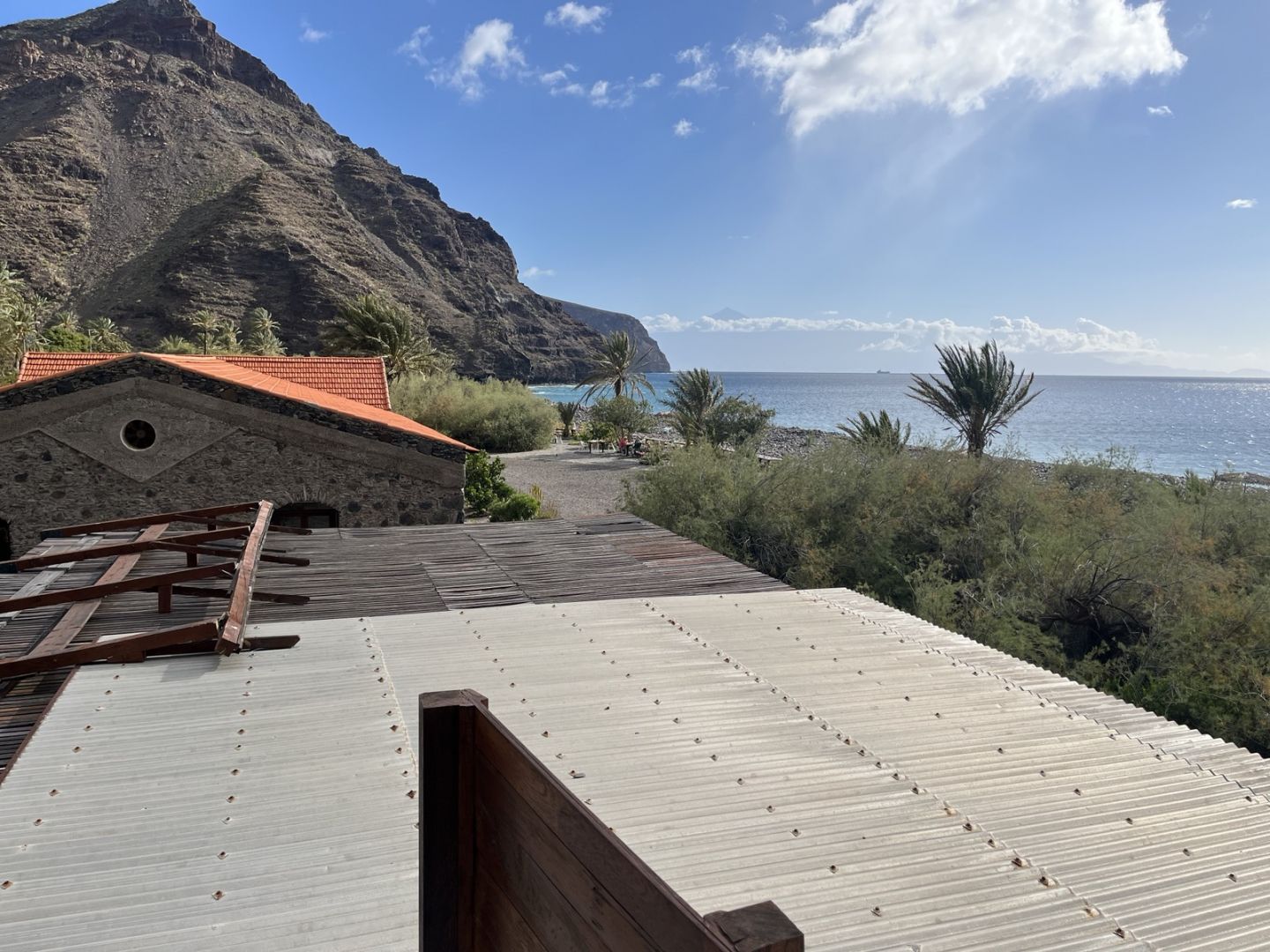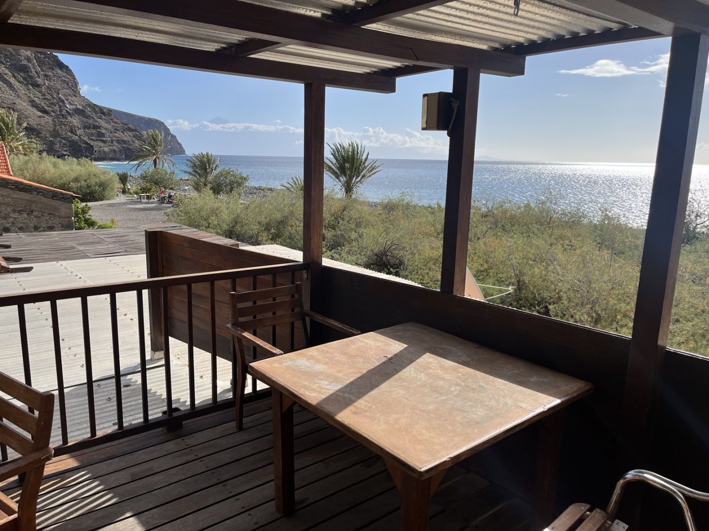 Morgens schaut man bereits von der Frühstücksterasse auf das leise an den Strand schlagende Meer.
