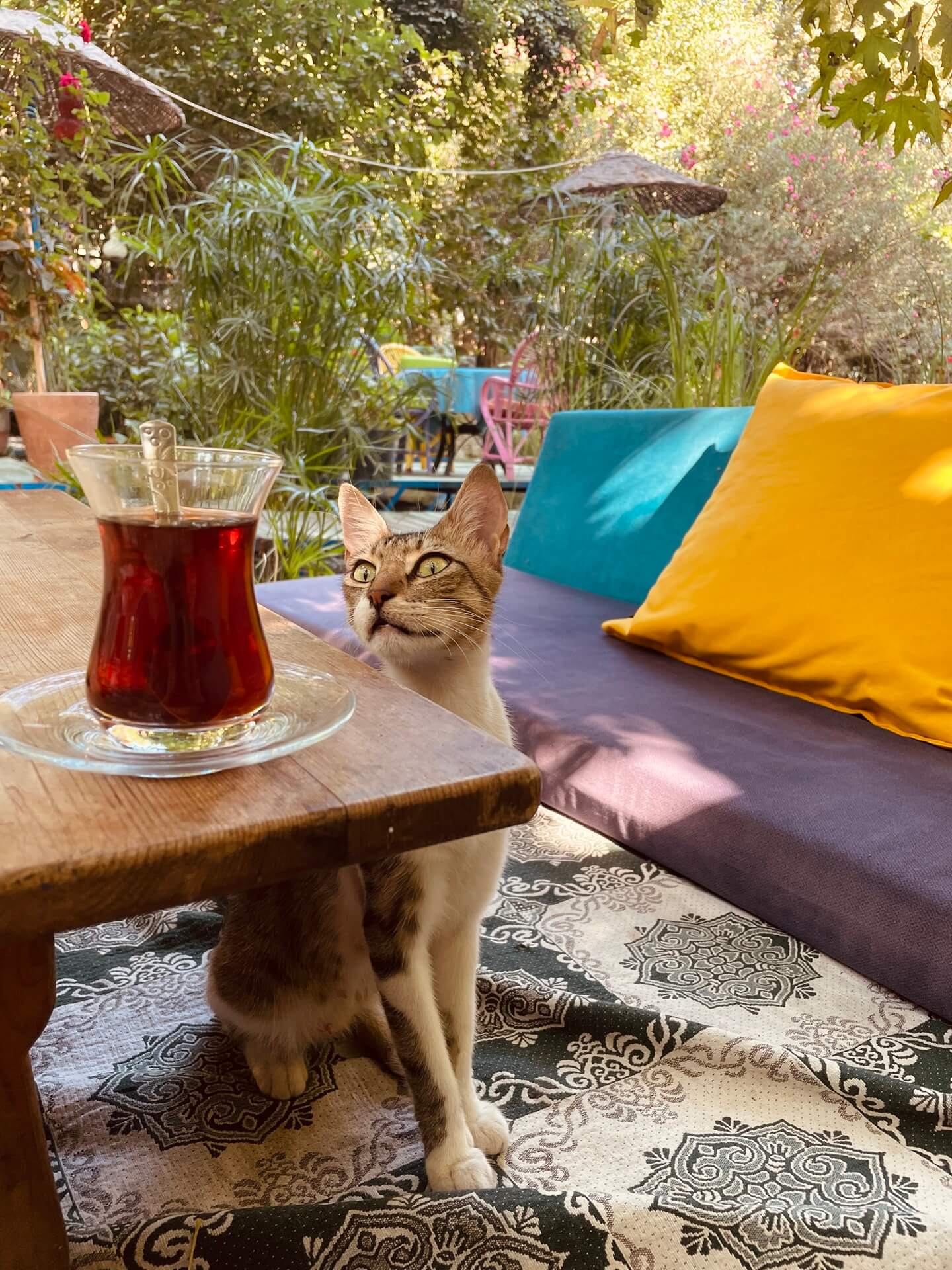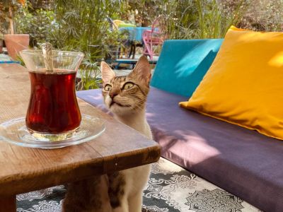 Sabine P.04.11.2024Ende Oktober habe ich mit meiner Tochter (10) nach einem schönen Urlaubsziel gesucht. Da wir alleine gereist sind, sollte es bequem erreichbar und entspannt sein. Cirali war dafür der ideale Ort! Wir konnten kleine Ausflüge ohne Auto unternehmen und mit Leihrädern kamen wir gut überall hin. Zu den ewigen Feuern, die ein tolles Erlebnis waren mit einer kleinen Wandereinlage und zum Strandende wo wir noch ein bisschen zu Fuß zur alte Stadt Olymps laufen konnten. Wir wurden sehr herzlich in unserer Anlage begrüßt und versorgt. Auf den bequemen Sofabetten auf der Terrasse verbrachten wir einige Abende mit Katzenstreicheln und Lesen. Täglich bekamen wir frisches Wasser gebracht und das Frühstück war umwerfend lecker und liebevoll angerichtet. Wir haben uns rundum wohlgefühlt. Auf der Suche nach einer Bootstour wurde ich an der Rezeption auch am besten beraten nachdem ich es im Örtchen schon versucht hatte bekam ich durch unsere Unterkunft den beliebtesten Kapitän mit dem schönsten Boot. Hier lernten wir eine andere deutsche Mutter mit Tochter kennen und das war besonders schön für alle. Zusammen machten wir am letzten Tag noch einen Ausflug mit dem Auto zum nahegelegenen Leuchtturm inklusive kleiner Wanderung und Baden bei Sonnenuntergang. Herrlich!Frühstück mit Meerblick