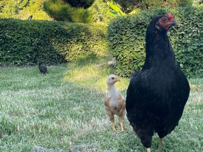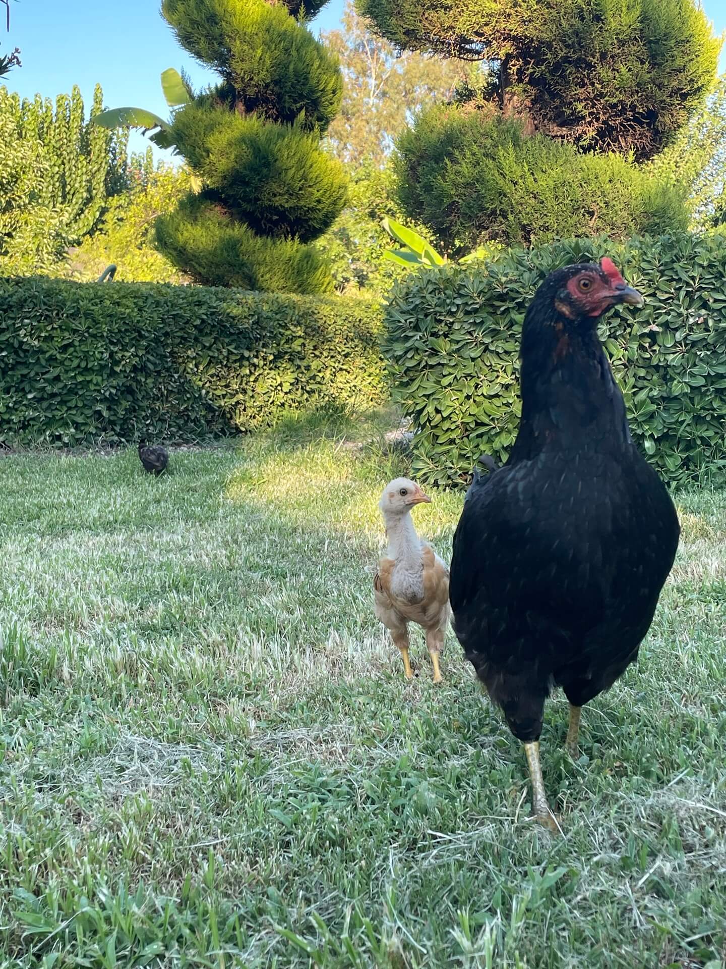 - Haustiere in der Anlage: Hunde, Hühner, Hahn, Katzen, Igel