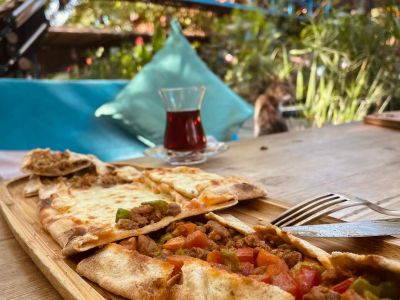 Im hauseigenen kleinen Restaurant der Anlage begrüßen Sie Gökhan und sein Team. Die Speisen werden frisch und liebevoll zubereitet und am Tisch serviert. Auch Vegetarier finden hier leckere Gerichte. Sie sitzen direkt am Sandstrand und blicken aufs offene Meer. Gökhan hat hier ein sehr lauschiges Plätzchen mit schattenspendenden Bäumen geschaffen, das man morgens, mittags und abends genießen kann. Auch eine kleine Bar mit typisch orientalischen Sitzecken zum Entspannen gibt es. Das Restaurant ist für Mittag- und Abendessen im Zeitraum 20.03. - 31.03.26 noch geschlossen.
