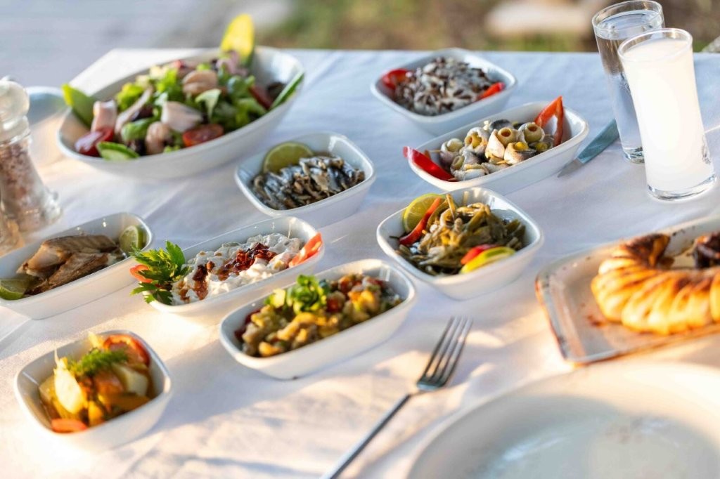 - Direkt am Sandstrand: Vielseitiges türkisches Frühstück, u. a. mit frischen Tomaten, Gurken und Oliven, Müsli, frisch gepresstem Orangensaft, Joghurt, Pfannkuchen, Eiern, selbst gebackenem Brot, verschiedenen Marmeladen, Käse, Honig und natürlich Kaffee und Tee