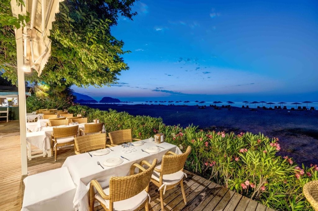 Im hauseigenen kleinen Restaurant der Anlage begrüßen Sie Gökhan und sein Team. Die Speisen werden frisch und liebevoll zubereitet und am Tisch serviert. Auch Vegetarier finden hier leckere Gerichte. Sie sitzen direkt am Sandstrand und blicken aufs offene Meer. Gökhan hat hier ein sehr lauschiges Plätzchen mit schattenspendenden Bäumen geschaffen, das man morgens, mittags und abends genießen kann. Auch eine kleine Bar mit typisch orientalischen Sitzecken zum Entspannen gibt es. Das Restaurant ist für Mittag- und Abendessen im Zeitraum 20.03. - 31.03.26 noch geschlossen.