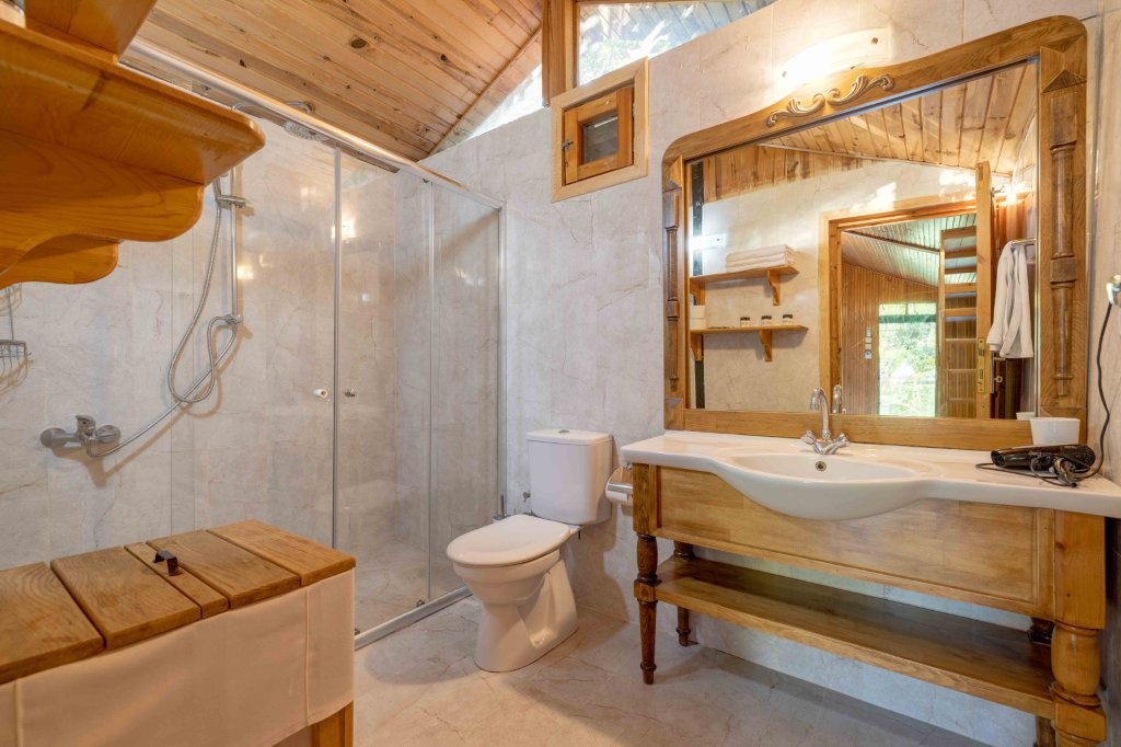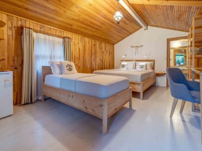 - 17 freistehende Holzbungalows, jeweils ausgestattet mit eigenem Bad, Klimaanlage/Heizung, Kühlschrank, Safe, Wasserkocher, kostenlosem Internet, Fliegengitter (an Fenstern und Türen), Bettwäsche.