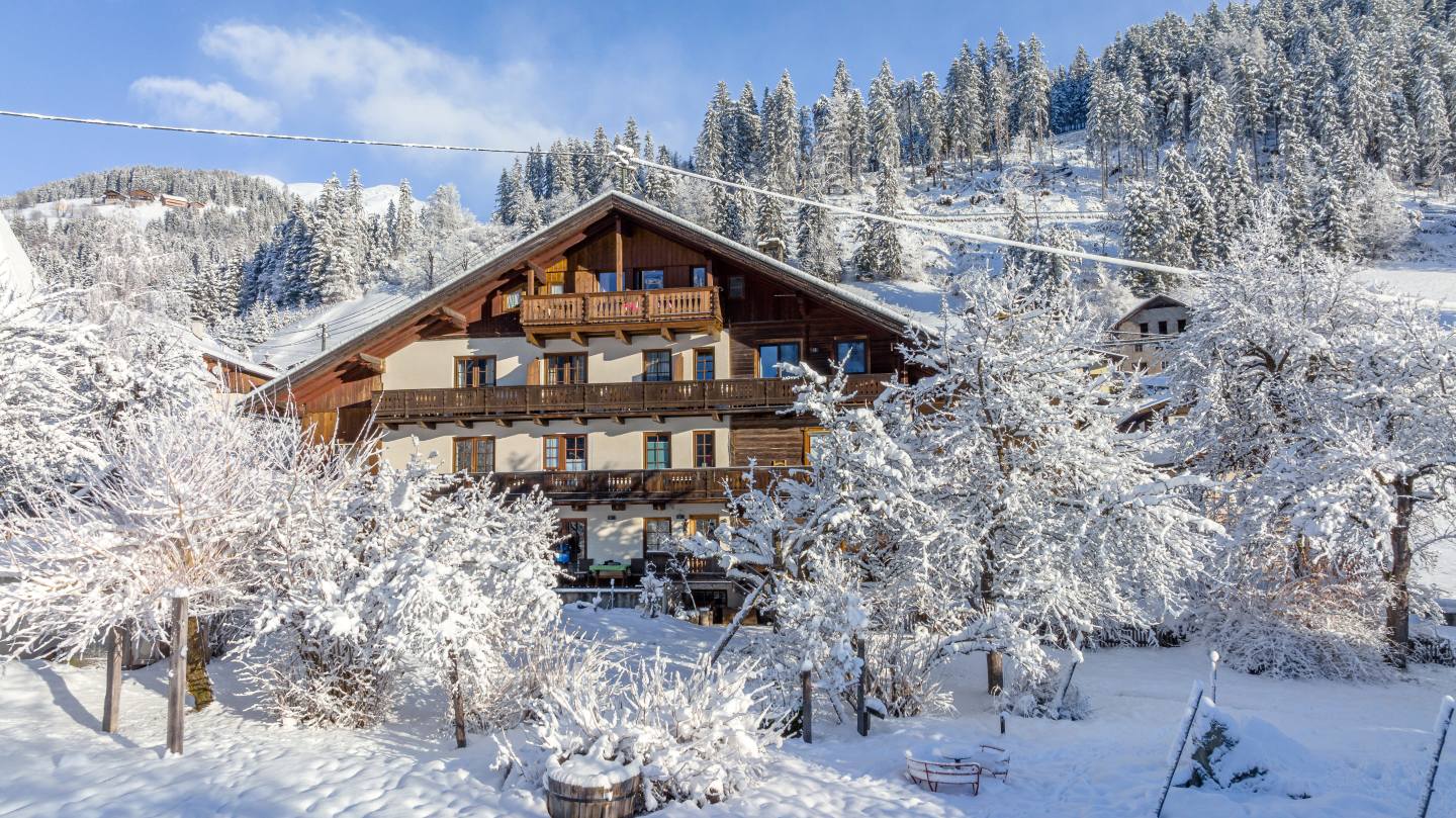Das Kärntner Lesachtal im Süden Österreichs gilt als Geheimtipp für alle, die auf der Suche nach einem Winterurlaub in einem entspannten, familienfreundlichen Skigebiet sind. Klein aber fein! Während unserer Winterwoche erwartet Sie unser Bauernhof als idealer Ausgangspunkt für Ihre Schneeabenteuer. Sie wohnen in gemütlichen und geräumigen Ferienwohnungen. Im Rahmen der inkludierten Halbpension erwartetet Sie ein köstliches Frühstücksbuffet und am Abend ein 4-Gänge-Menü.