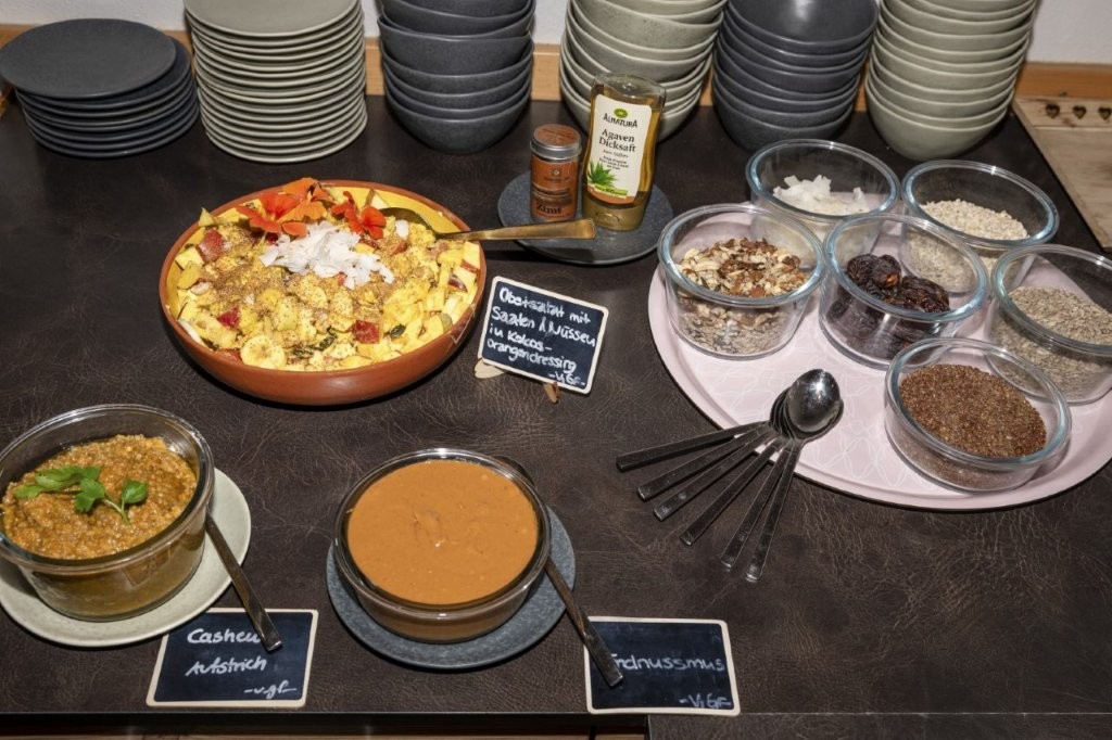 - Vegetarisch-vegane Speisen in fast ausschließlich Bio-Qualität